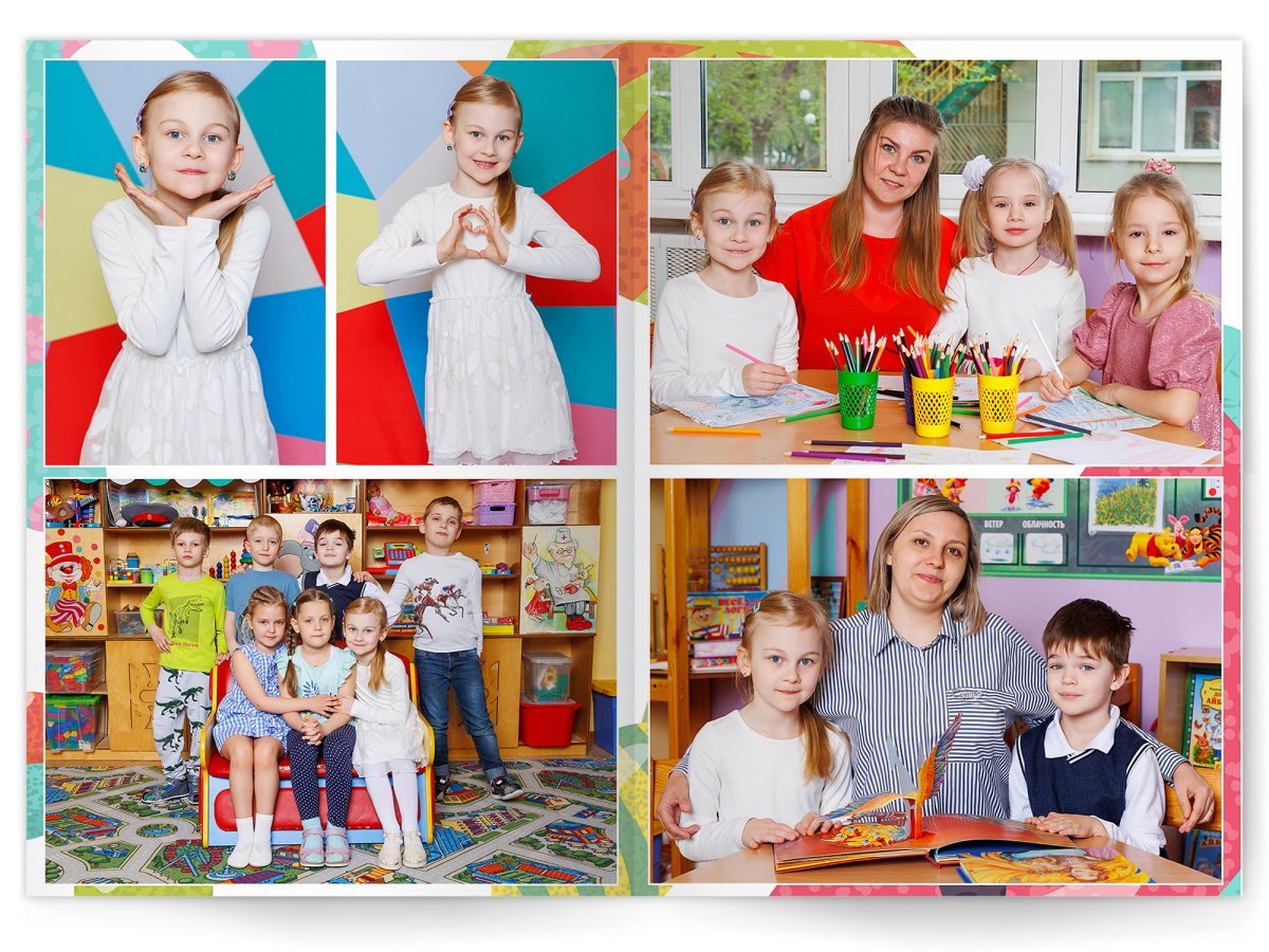 • Портреты всех детей и воспитателей на развороте или странице